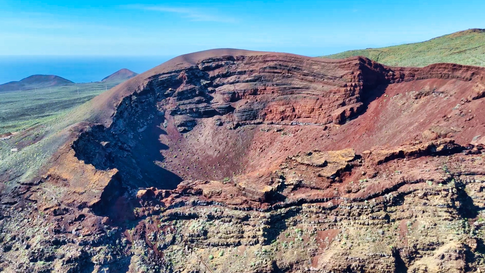 Hiking along volcanic crater Hoya de Maria - El Hierro